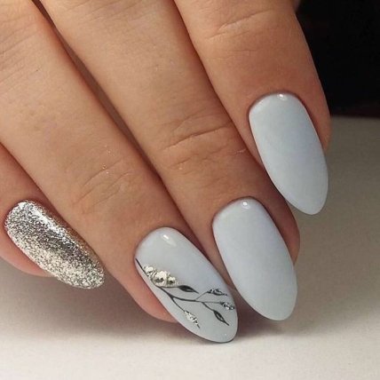 Стразы, бусины и глиттер, станут идеальными помощниками в этом случае. Не менее красиво смотрится такой вариант маникюра, выполненный лаком с металлическим эффектом или дополненный аккуратными рисунками.