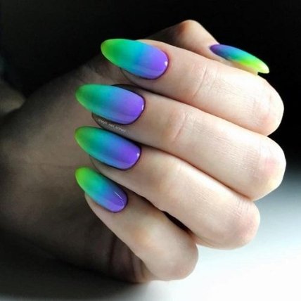 Например, голографический или зеркальный маникюр с эффектом омбре.