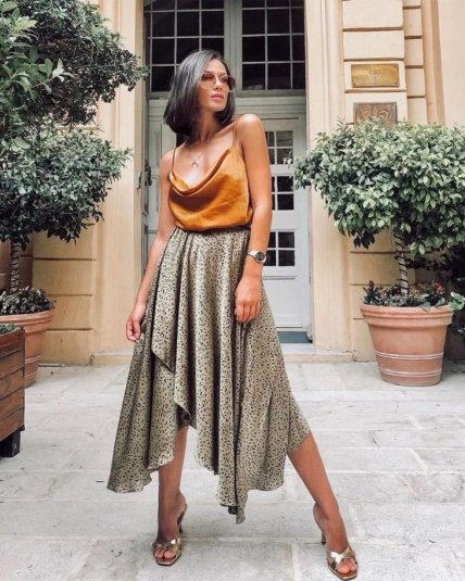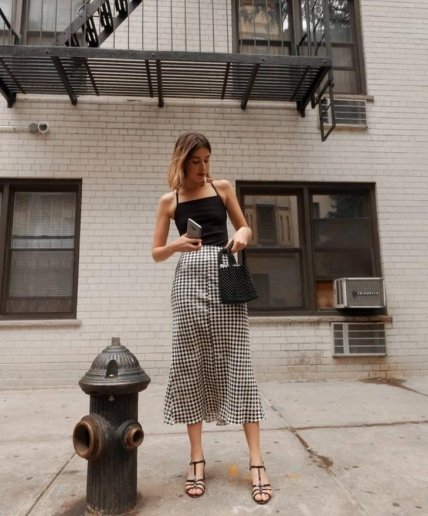 Юбки длиной миди в основном носят летом. Такая юбка сочетается с любой обувью будь то кроссовки, сандалии или ботинки. Миди-юбка выглядит хуже с туфлями на высоком тонком каблуке.
