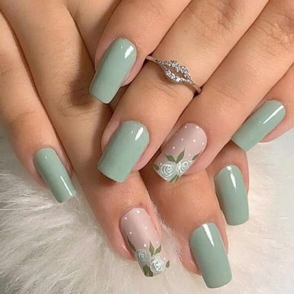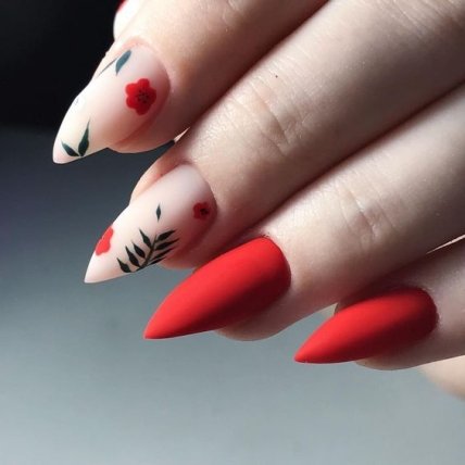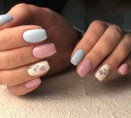 В качестве основы используйте нюдовые или прозрачные лаки, а на одном или двух ноготках рисуйте любимые цветы или аккуратный цветочек. Это самый нежный маникюр весны 2020.