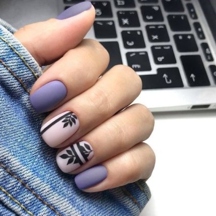 Также можно разделить один из ноготков продольной черной полоской – получится весьма эффектный о очень красивый маникюр в стиле минимализм.