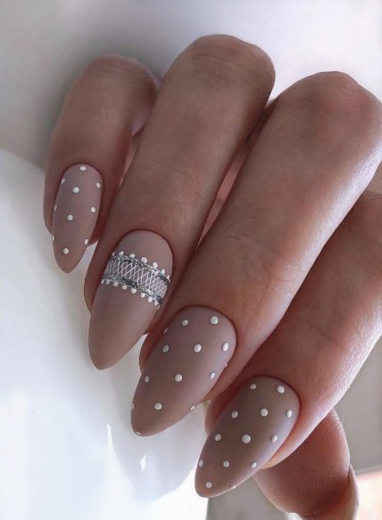 Маникюр с очаровательным ненавязчивым дизайном в бежевом цвете - прекрасный пример того, что длинные ногти не всегда выглядят вызывающе.