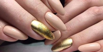Очаровательный маникюр с использованием бежевого лака.