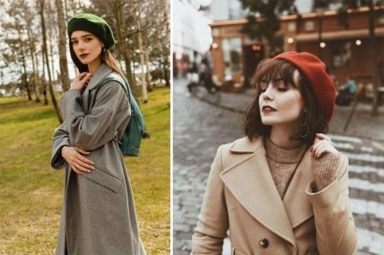 Этот женственный и в меру элегантный головной убор будет на пике моды весь грядущий год. Берет прекрасно сочетается с классическим пальто, юбками и однотонными водолазками. В такой комбинации создается образ изящной француженки.