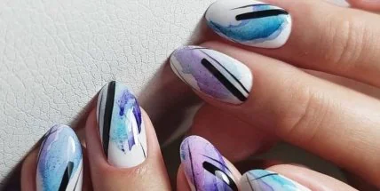 Нейл-дизайн можно выполнить в фиолетовых, лиловых, кобальтовых оттенках.
