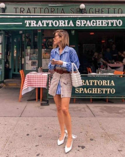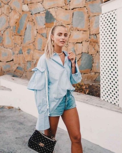 При выборе шорт на лето следует игнорировать модели с низкой посадкой. Еще один запрещенный прием - выправление верха и маскировка линии талии как таковой. Совсем другой эффект гарантирует модный фасон комфортно короткой длины с завышенной талией и не слишком объемным кроем. Верх в таких луках должен быть не длиннее уровня талии или же заправляться в шорты. Как выглядят удачные аутфиты, вы можете посмотреть на фото ниже.