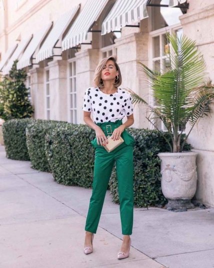 Отлично работают и монохромные образы, которые в жаркую погоду составляются преимущественно в светлой или пастельной палитре. Подобные модные образы хороши с однотонными костюмами и прекрасно подходят для полных женщин невысокого роста в сезоне лето 2020.