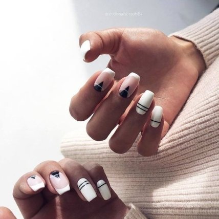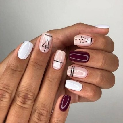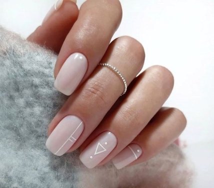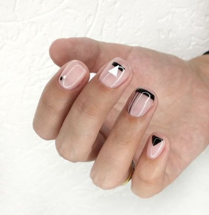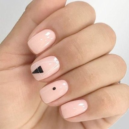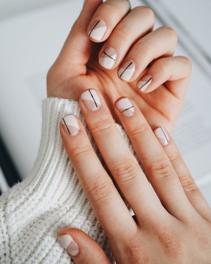 В 2020 году актуальностью пользуются маникюр в минималистическом стиле с лунками, овалами и треугольниками.