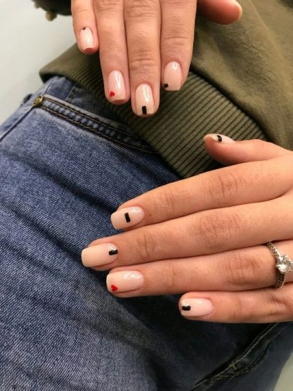Именно поэтому мастера маникюра включили в минималистический дизайн несколько таких элементов.