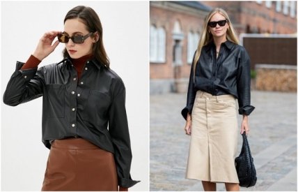 Сочетание юбки и кожаной рубашки - беспроигрышный вариант для тех, кто хочет добавить в образ дерзости