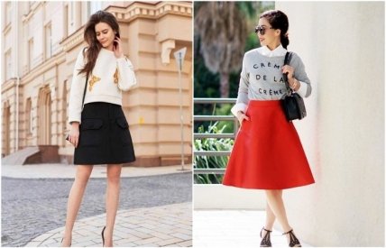 Юбка А-силуэта должна быть в гардеробе каждой девушки. За счет своего кроя она прекрасно скрывает бедра, а также делает талию более стройной и выразительной, к чему мы, собственно, и стремимся. Примером для вдохновения могут стать образы американской актрисы Хлои Грейс Морец. Несмотря на то, что у девушки прямоугольный тип фигуры, то есть слабо выражены грудь, талия и бедра, юбка помогает ей выглядеть очень хрупко и женственно. Отдавать предпочтение стоит моделям с посадкой строго на талии, расклешенным книзу.