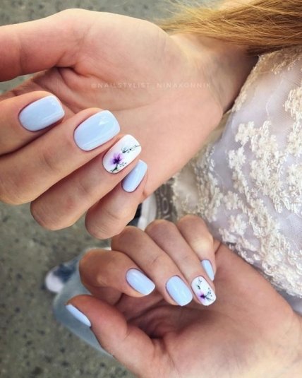 В списке нейл-тенденций 2020-го — светлый маникюр, так что пастельный голубой лак вполне может обеспечить вам попадание в тренд.