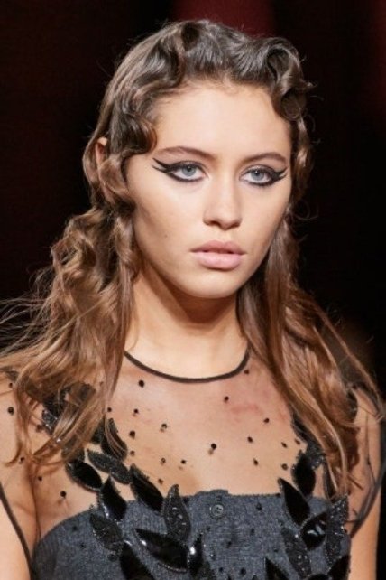 Замечено на показах: Christian Dior, Emilio Pucci, Prabal Gurung, Max Mara. Мария Грация Кьюри черпала вдохновение из феминистического движения 70-х годов. Этот образ красоты легко повторить самостоятельно. Важно создать немного небрежный эффект при помощи растертых кончиков стрелок. Ну а смоки айс в темных тонах идеально дополнит ваш макияж.