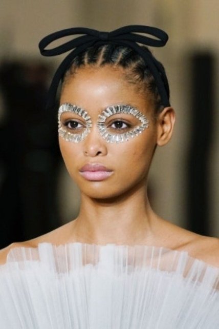 Замечено на показах: Halpern, Giambattista Valli, Christopher John Rogers. Вы уже знаете, что мир моды и красоты 2020 года попал под влияние популярного сериала "Эйфория". Макияж со стразами – один из таких трендов. Для показа бренда Giambattista Valli стилист Исамая Френч использовала маленькие стразы в форме слезы, чтобы полностью украсить глаза моделей по кругу. Этот эффект блеска она подчеркнула свежей и увлажненной кожей, без каких-либо румян или хайлайтера. Такие стразы были замечены на множестве показов и не только в макияже, но и в одежде. Эта тенденция подходит только рискованным девушкам, ведь совершенно очевидно, что такой оригинальный макияж будет привлекать к вам внимание всех вокруг.