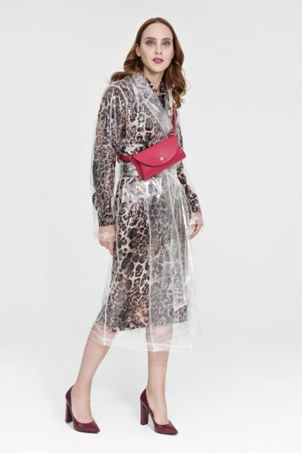 Прозрачные. Защититься от проливного весеннего дождя вам поможет прозрачный плащ-дождевик. Он может иметь прямой или приталенный крой. Дизайн прозрачных моделей минималистичен.