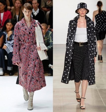 Принтованные. Плащи, украшенные затейливыми принтами, не только помогут создать броский аутфит, но и здорово поднимут настроение. Как и ранее, наибольшим спросом будут пользоваться клетчатые модели. Модной будет абсолютно любая клетка, начиная от шахматки или шотландки и заканчивая более необычными формами. Цветовой окрас тоже может быть разным. Второе место мы отвели анималистичным принтам, которые неустанно кочуют из сезона в сезон. Вы можете выбрать изделия, декорированные змеиными или крокодильими пятнами, полосками зебры или тигра. И конечно же весной уж никак не обойтись без плащей с флористическими орнаментами.