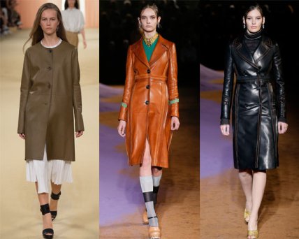 Кожаные. Главным трендом 2020 года является кожа, которую дизайнеры неустанно используют для пошива различной одежды. Плащи не стали тому исключением. Вы можете стать счастливой обладательницей классического черного или бежевого варианта, так и более ярких изделий. Нет ограничений и в выборе фасона. Это могут быть приталенные модели или широкие оверсайз.