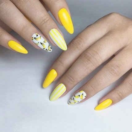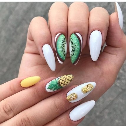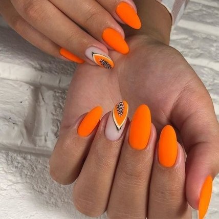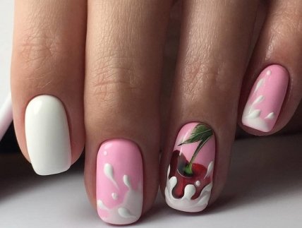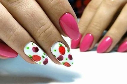 Также он отлично подойдет для популярного фруктово-ягодного дизайна маникюра на лето 2020.