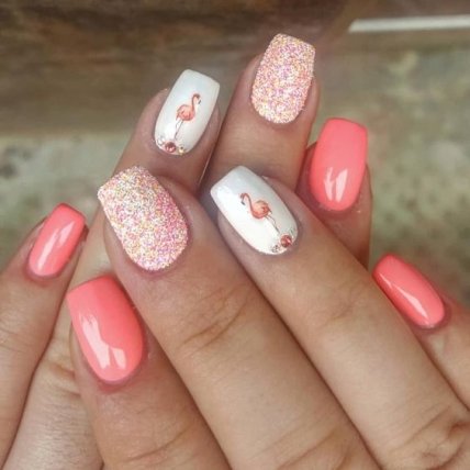 На звание «Самый красивый дизайн лета 2020» претендуют яркие цветочные орнаменты, выполненные на подложке из гель-лака, наполненного блестками.