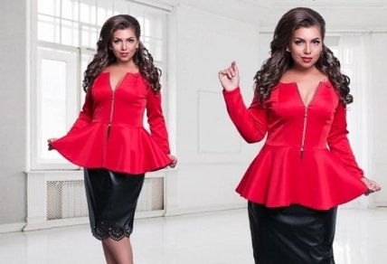 Для полных модниц подходит мода носить верх костюма полузаправленным.