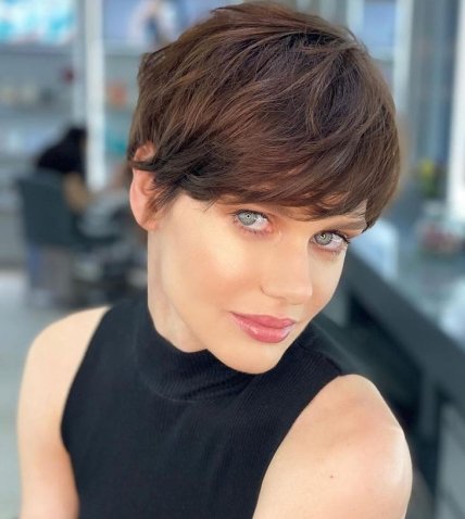 Обладательница крупных выразительных глаз выбирает короткую челку. Она акцентирует внимание на открытом взгляде и придает лицу молодость и свежесть. Возрастным женщинам такие челки не подходят, они будут демонстрировать посторонним морщинки на лбу. Молодым девушкам рекомендуется носить их с короткими стрижками.