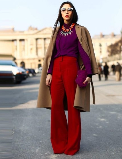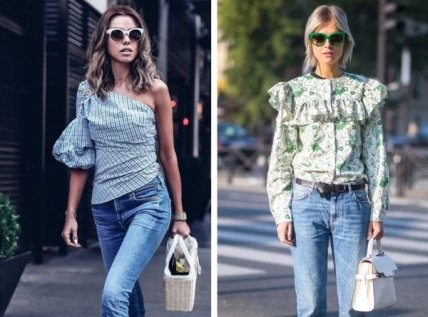 Если в вашем арсенале имеются трендовые джинсы клеш и колоритная блуза с бантом, обязательно соедините их в рамках одного образа. Так вы придадите своему луку неповторимый шик стиля ретро.