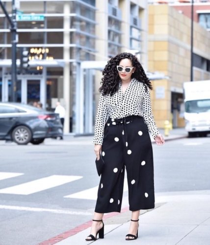 Такой тандем подскажет, как интересно обыграть блузу с цветочным или любым другим принтом. Просто подберите однотонные брюки в один из оттенков рисунка, и готовьтесь собирать комплименты.