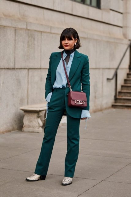 Эта идея не претендует на звание новинки, скорее она занимает позицию незыблемой классики, всегда востребованной в кругу элегантных женщин. Но все же один горячий тренд коснулся традиционного сочетания – сейчас чрезвычайно модно подбирать блузу в тон костюма, создавая изысканный монохромный лук.