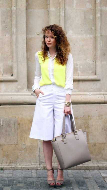 Стильной новинкой теплого сезона стали элегантные бермуды, которые легко можно подружить с различными моделями актуальных блузок. Такой союз определенно стоит взять на вооружение с приближением летнего сезона, если вы не только за практичные, но и за изящные аутфиты.