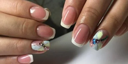 В этом предложении френча¸ белый полумесяц на кончике ноготка не имеет чёткой границы, а выполняется плавным переходом белого цвета к оттенку основного покрытия.