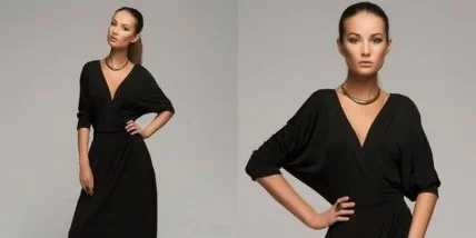 Времена меняются, выставлять себя напоказ уже не модно. Больше ценится в женщине сегодня загадка. Поэтому одежда в обтяжку на худеньких – это вульгарно. На полных женщинах – смешно. Лучше для базового гардероба приобретать свободное одноцветное платье, длиной до колена или до середины икры. Актуальна и форма футляр. Но нужна модель со сложным кроем.
