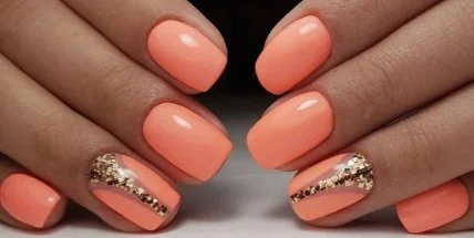 Цвет сочного фрукта подойдет как молодым модницам, так и женщинам старше 50. Теплый оранжево-розовый оттенок – это утонченное, нежное сочетание в маникюре, лучше которого еще не придумали.