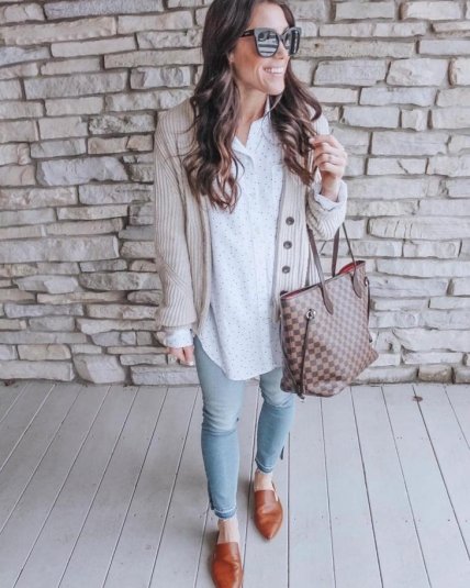 Несмотря на свободный крой туники ее очень часто используют для делового стиля. Офисный лук включает в себя тунику, которая не имеет слишком ярких и декоративных деталей. Это может быть мега популярная туника-рубашка или приталенный вариант. Из цветов выбирают нюдовые оттенки, белый или серый. Идеальным фасоном туники для работы – удлиненный вариант блузки, то есть она немного прикрывает бедра. Тунику можно комбинировать с классическими брюками, юбкой-карандаш. Для полноценного строгого образа можно наверх выбрать стильный жакет.