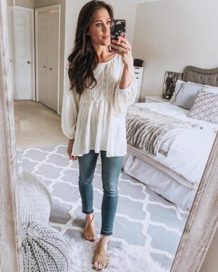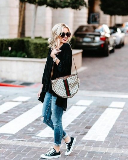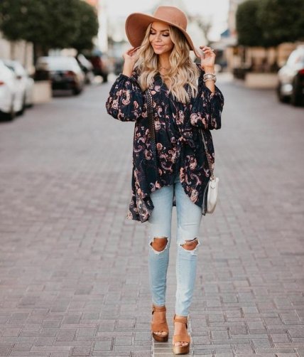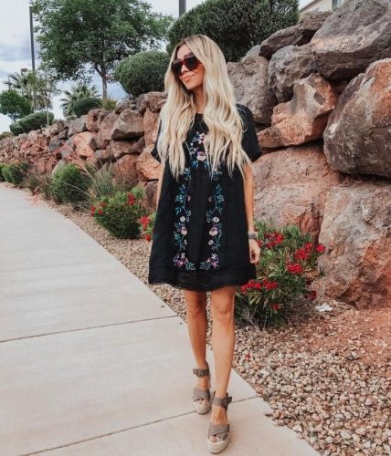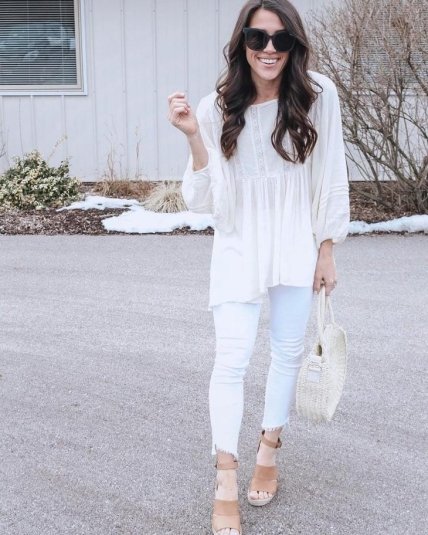 Более короткие туники из летящей и легкой ткани гармонично впишутся в любой повседневный образ. Их можно комбинировать с юбками, шортами и заканчивать лук удобными вьетнамками или кроссовками.