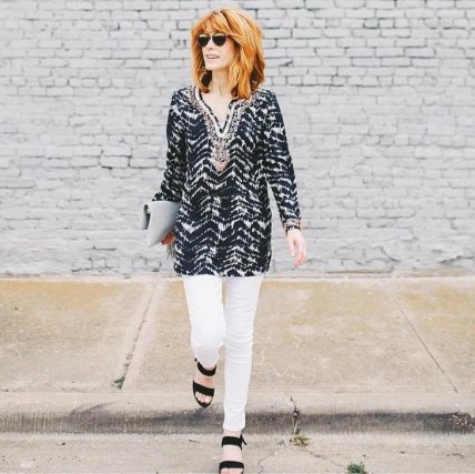 Также туники различаются по длине и расцветке. Самым оптимальным вариантом будет туника с длиной до колен. Модель можно будет сочетать с джинсами, легинасм, брюками и шортами.