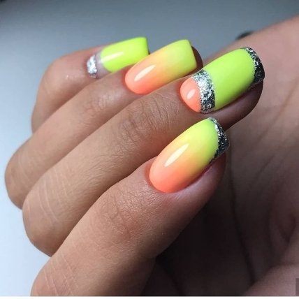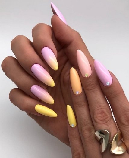 Тенденции маникюра лето 2020 включают интересные варианты сочетания градиента и рисунков.