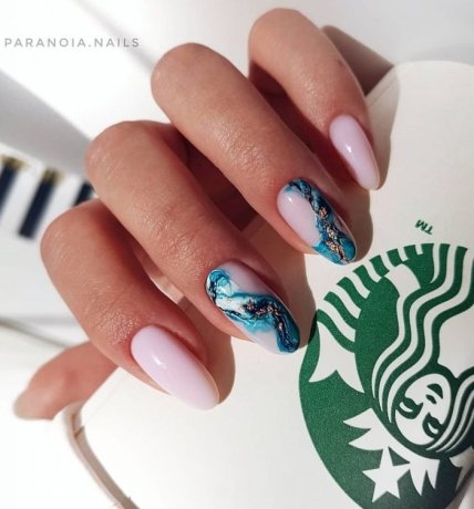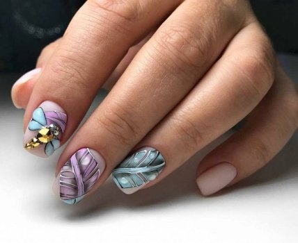 Также приветствуются контрастные элементы и совмещение близких тонов. Дополнить такой нейл-арт можно при помощи фольги, блестков или зеркальной втирки.