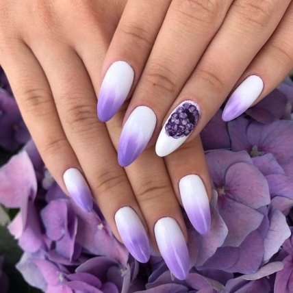 При помощи мелких мерцающих элементов можно выполнить прекрасный френч в стиле омбре, поскольку такой маникюр станет отличным решением для летнего сезона. Для ярких и грациозных модниц дизайнеры предлагают выполнять улыбочку различной формы. Это может быть овал, треугольник или удлиненная улыбка.
