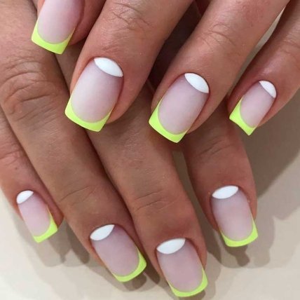 Французский маникюр никогда не выходит из моды. Для летнего сезона 2020 предлагается разнообразить привычный белый цвет улыбки. Заменить базовый цвет можно на более яркие и броские тона из стильной палитры. Еще одним прекрасным вариантом для выполнения линии улыбочки станут блестки.