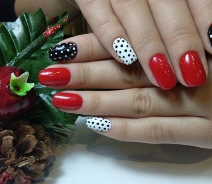 Можно выполнять поочередное окрашивание, либо нанести на 3 ноготка один тон, а остальные пальчики покрыть контрастным цветом.