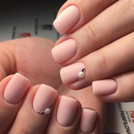 Если в планах у девушки выполнение строгого маникюра, то в качестве завершающего покрытия лучше всего применить матовый топ. Бархатистая структура придаст образу женственность и изящность.