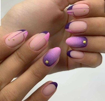 Мастера маникюра предлагают такой френч сочетать с однотонными покрытиями на двух пальчиках. Особо красиво будет, если обе ногтевые пластины выполнить в матовом варианте.