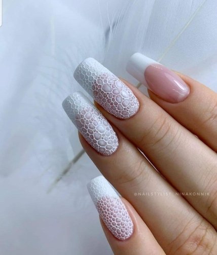 Кружева всегда смотрелись сексуально и дорого. Поэтому такая красота просто обязана стать украшением женских ноготков. Данный дизайн выполняется при росписи кистью, а также можно его нанести при помощи стемпинга. Данное приспособление уже имеет определенные орнаменты, которые всего лишь нужно перенести на ногтевую пластину.