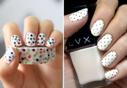 Дотс — это специальный инструмент, который на конце имеет круглый металлический шарик. Ним наносятся горошины нужного размера при помощи гелевых красок или другого лакового покрытия. Довольно интересно и необычно смотрится дизайн, если горох выполняется одновременно в нескольких цветовых гаммах. Не обязательно горошины делать одинакового размера.