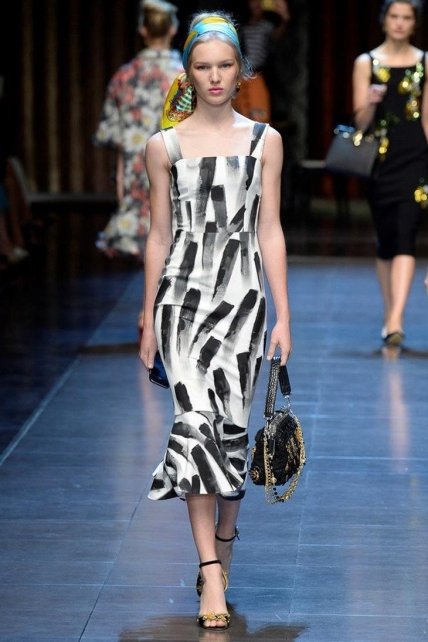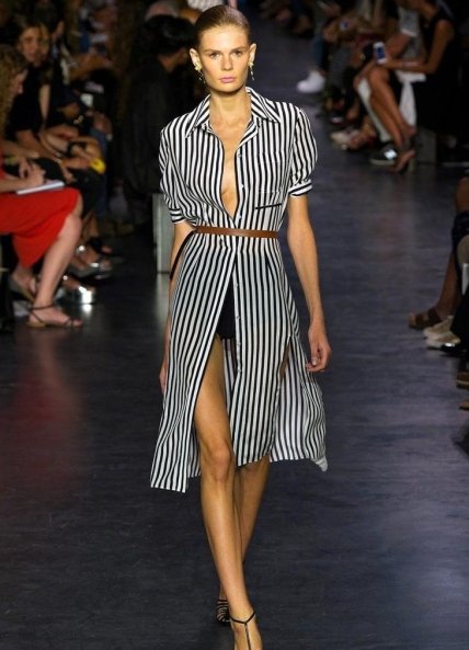 Вариаций горизонтальных полосок в новом сезоне великое множество. Классические ровные горизонтальные линии еще популярны, но модницы все чаще предпочитают более оригинальные и необычные идеи. В тренде принты с широкой, извилистой, вертикальной полоской. Полосы могут быть расположены даже по вертикали и выполнены в одном платье в разных направлениях.