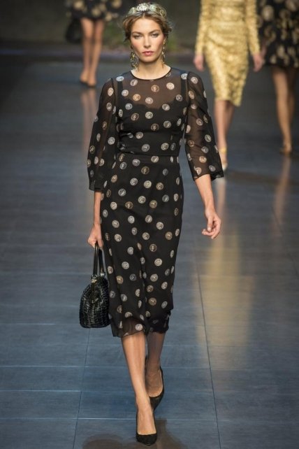 Милый принт в крупный и мелкий горошек не теряет своих позиций несколько десятков лет. Особой любовью модниц, предпочитающих ретро-стиль, пользуются модели в черно-белом цвете с эффектными подкладками из кружева.