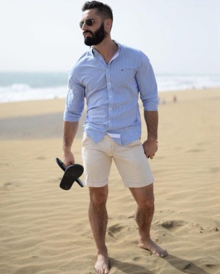 Отличный вариант для похода на пляж, прогулок по набережной и даже для посещения ресторана открытого типа. Бриджи стильно сочетаются с футболкой поло или лёгкой рубахой в гавайском стиле.
