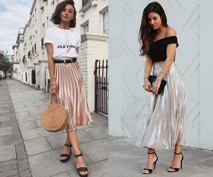 Чтобы добавить фигуре пикантного объема, можно использовать для этой цели ультрамодные сверкающие фактуры. Например, стильным приобретением, подходящим и для худых женщин за 50, является плиссированная юбка длины миди с очаровательным блеском. Такая новинка пользуется популярностью уже несколько сезонов подряд, и, похоже, не намерена сдавать позиций.