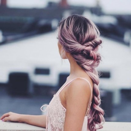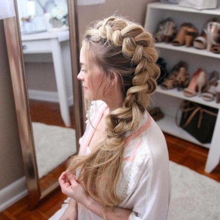 Заплетите одну широкую или много средних кос, затем сплетая большую уже из них. Слегка «растреплите» руками.