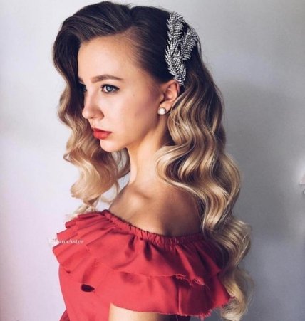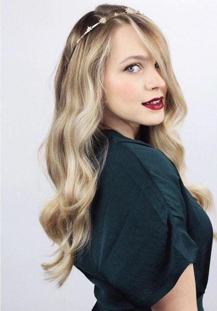 Слегка завейте волосы и украсьте ободком, спрятав его концы в прядях.
